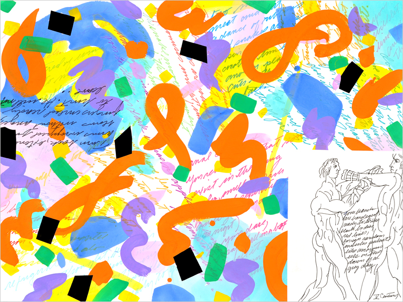 From 500 BC Greek red figure vase painting, British Museum, inspired poems and image then fragments of others plus colors
